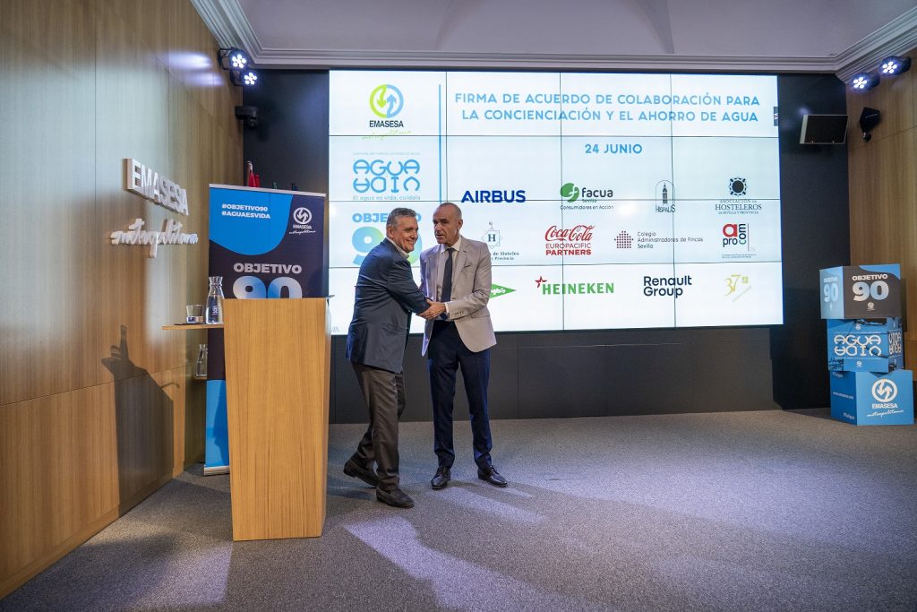 El Ayuntamiento y Emasesa avanzan en la estrategia de fomento del ahorro de agua ante la actual situación de prealerta por sequía con la firma de un convenio con una docena de grandes empresas y entidades sociales y económicas para promover un consumo más responsable