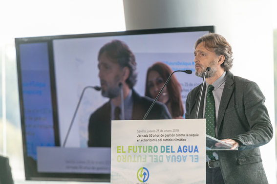 El alcalde de Sevilla, Juan Espadas Cejas, inauguró jornada acompañado del Consejero de Medio Ambiente y Ordenación del Territorio de la Junta de Andalucía, José fiscal, y la Directora General del Agua del MAPAMA, Liana Ardiles. En su intervención, al igual que lo hicieron los otros dos intervinientes, destacó y celebró la colaboración entre las administraciones con responsabilidades y competencias en la materia a la hora de luchar contra la sequía y frenar los efectos del cambio climático. En esa línea, animó al MAPAMA a licitar las obras de depuración pendientes en Sevilla y que están declaradas de interés general del Estado.