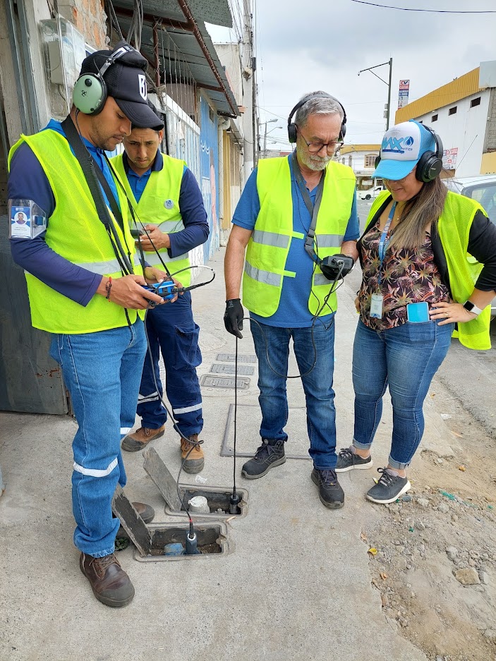 PortoAguas en su afán de mejora continua y excelencia en el servicio integral del Agua, se encuentra abordando la problemática de las fugas de agua en la red de distribución. En esta tarea, PortoAguas está contando con el apoyo de la Empresa Metropolitana de Abastecimiento y Saneamiento de Sevilla, a través de un convenio con AECID. En estos días, ambas empresas se encuentran trabajando en el fortalecimiento del área de detección de fugas, realizando trabajos de detección mediante el uso de los nuevos equipos que van a ser adquiridos por la empresa de aguas de Portoviejo. El empleo de la tecnología va a permitir acelerar la detección de fugas de agua, lo que va a mejorar la capacidad operativa de PortoAguas mediante esos novedosos sistemas de detección.
