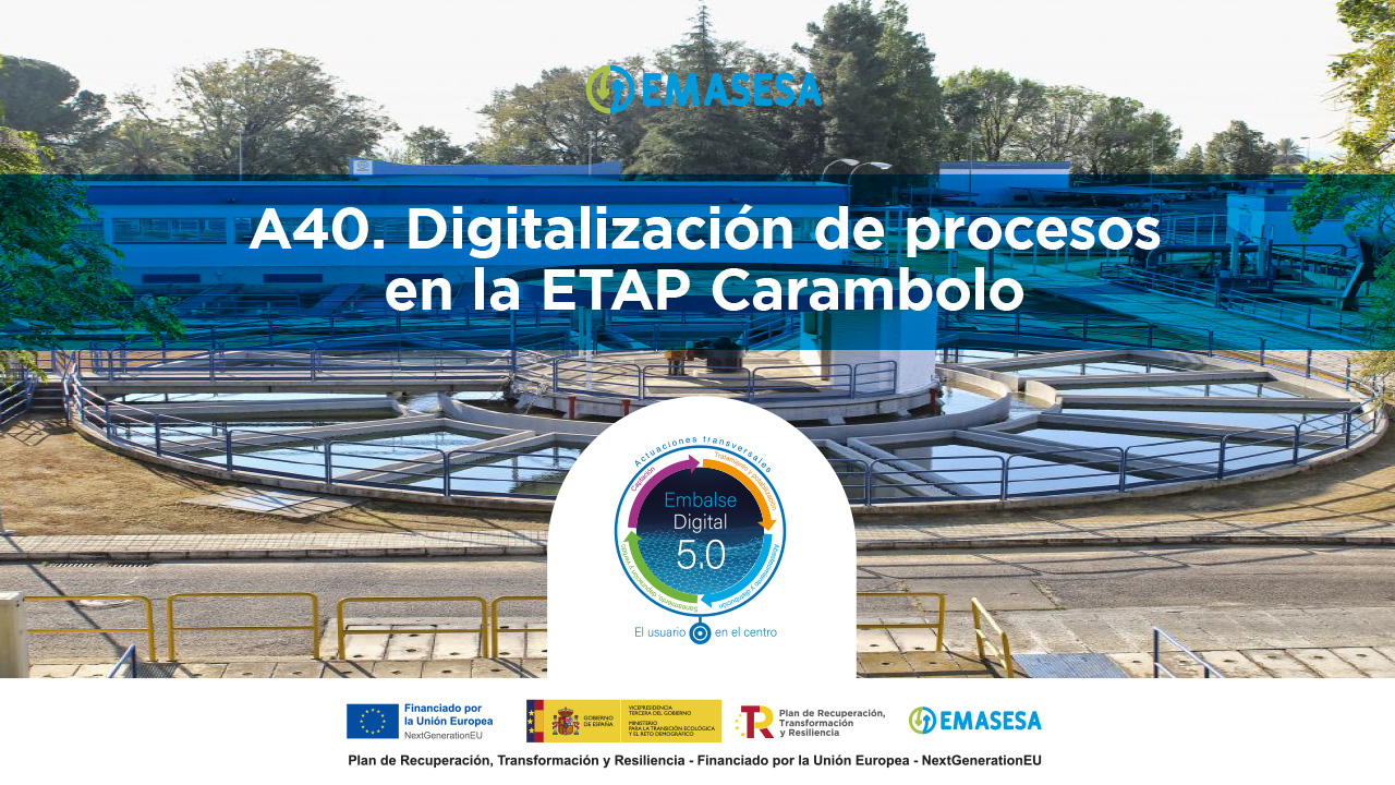 La actuación A40 del proyecto “Embalse Digital 5.0” persigue la digitalización de todos los procesos de la Estación de Tratamiento de Agua Potable (ETAP) Carambolo, desarrollando algoritmos basados en Inteligencia Artificial que permitan optimizar los procesos de tratamiento.