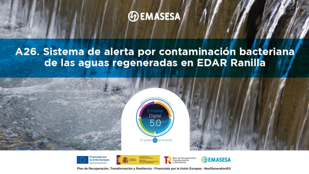 EMASESA ha desarrollado un sistema de alerta temprana para la detección de posible contaminación bacteriana en las aguas regeneradas. Es la actuación A26 de Embalse Digital 5.0, el proyecto de transfortmación digital de EMASESA. Se trata de un proyecto piloto promovido sobre las aguas regeneradas en la cuenca demostrativa de Ranilla, y que persigue especialmente la detección de contaminación por las bacterias más comunes en este tipo de aguas, Legionella y E. coli.